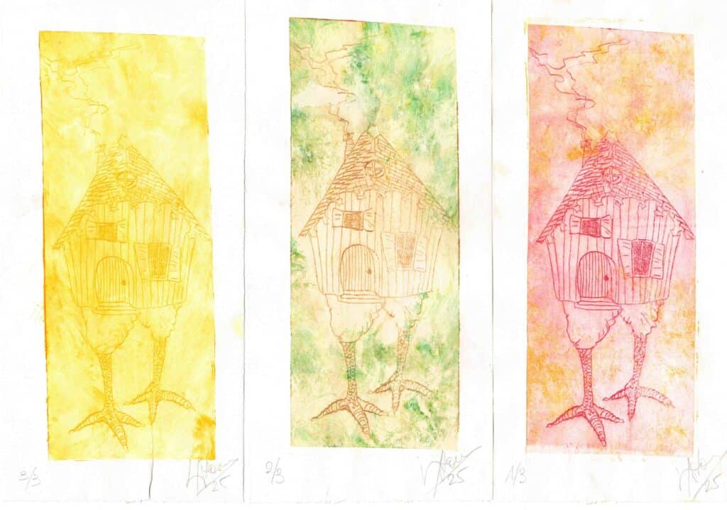 Je continue la gravure sur gommes et sur linoléum : j’ai fourni à la graphiste une estampe pour la couverture d’En abyme et créé un tampon sur le même thème pour fabriquer des marque-pages.